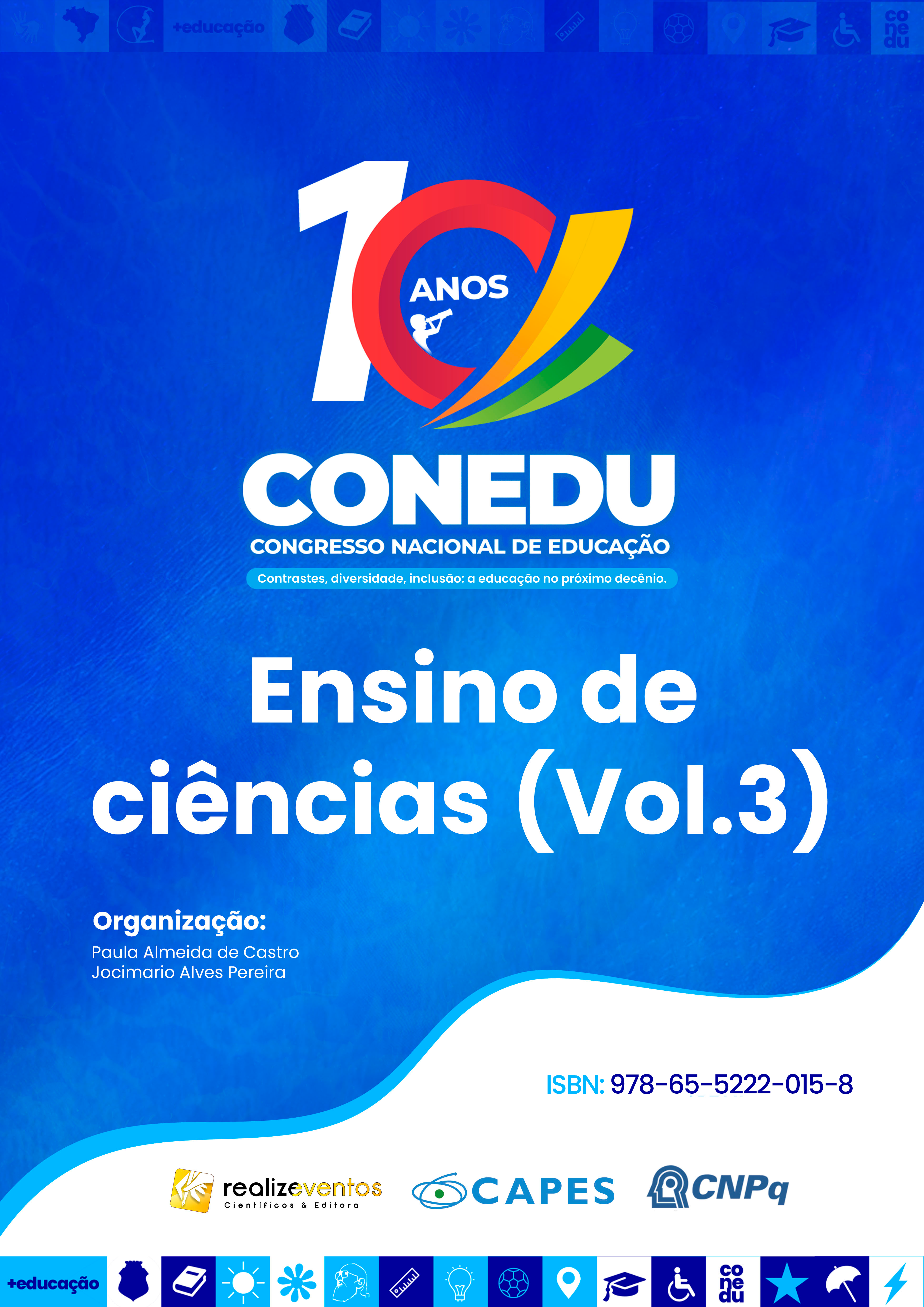 Nos capítulos seguintes, os leitores encontrarão estudos teóricos e empíricos, com relatos de experiências e práticas didáticas e pedagógicas no Ensino de Ciências, com reflexões tematizadas em “Contrastes, diversidade, inclusão: a educação no próximo decênio”. Sendo pesquisas selecionadas com o objetivo de estimular novas reflexões, assim como expor vivências exitosas, para contribuir para continua lapidação e construção de conhecimento da área.